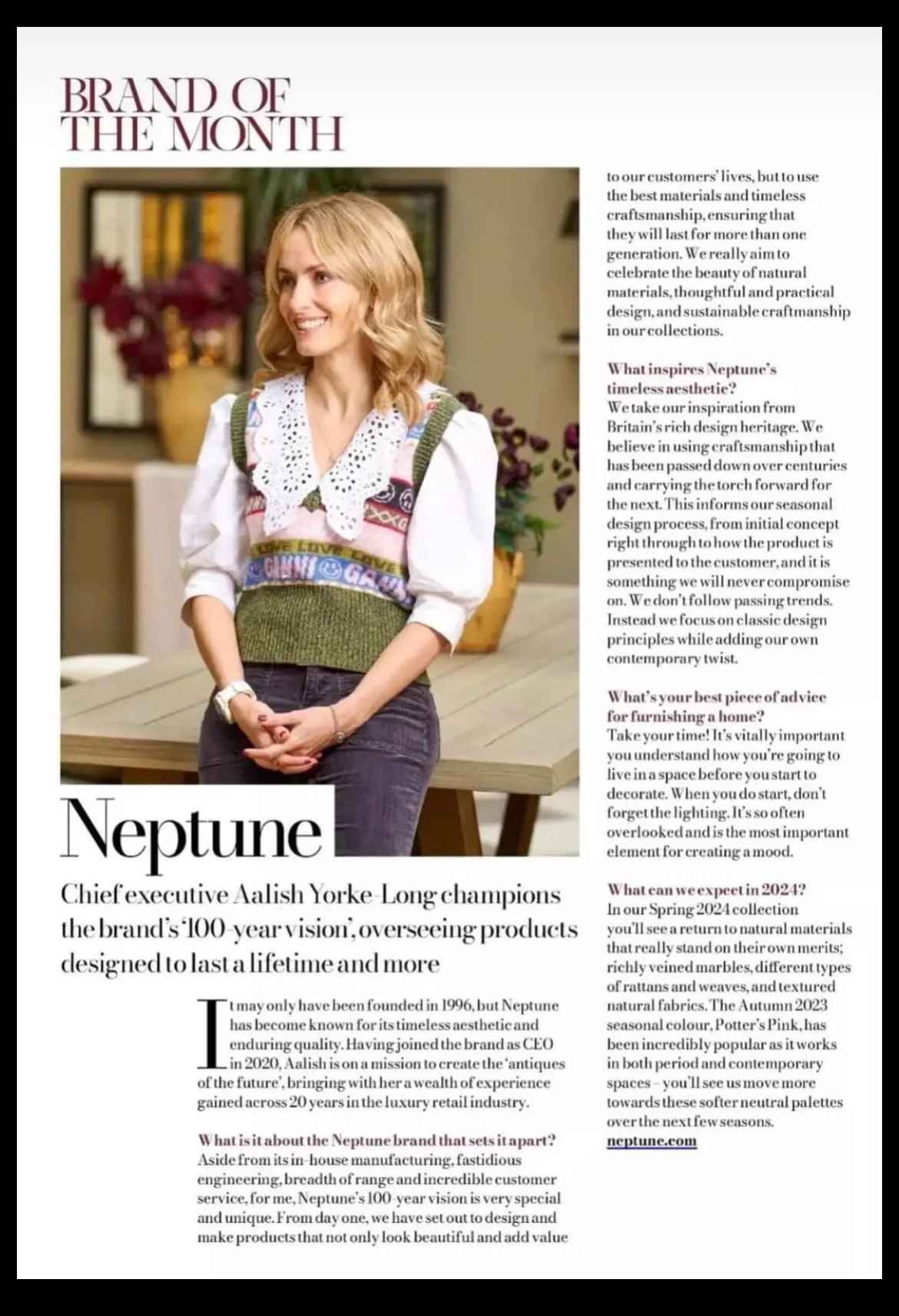 Aalish Yorke-Long was appointed as the first CEO of British interiors brand Neptune in 2022, having previously served as MD of retail at Soho House. So, it’s fair to say she has a keen sense for what British consumers want when it comes to cool homeware. Here, she tells us the names and places she goes back to time and again…